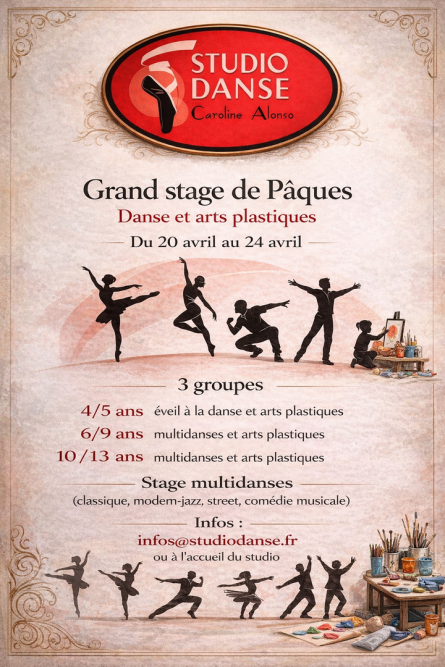 Studio Danse dirigé par Caroline Alonso, ancienne élève de Danse de l'Ecole de l'Opéra de Paris et de l'Ecole Nationale Supérieure de Danse de Marseille, ancien professeur de Danse Classique au conservatoire de Levallois-Perret et danseuse professionnelle depuis 15 ans, offre diverses disciplines pour enfants, adolescents et adultes.